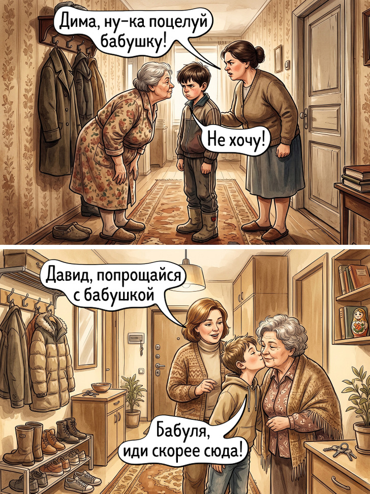 Дети прошлого были более самостоятельными и, так сказать, суровыми. А современных мальцов хлебом не корми — дай пообниматься