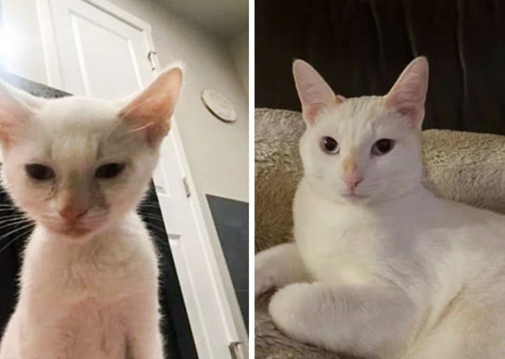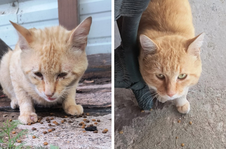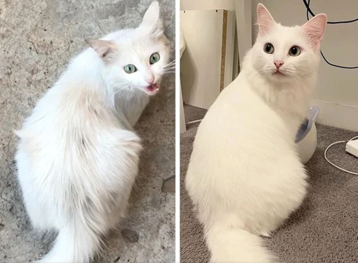 «Я подобрала этого кота на улице. Вот фото „до“ и „после“ с разницей в один год»