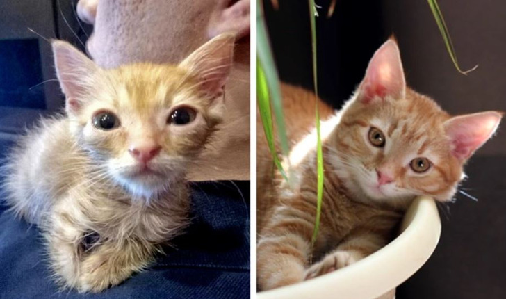 «До и после. Котенок Куки, которого мы спасли год назад»
