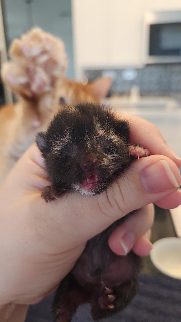 «Обратите внимание на рыжего котенка на заднем плане. Он пытается успокоить малышку, потому что она все время мяукает. Он понятия не имеет, как ей помочь, но очень старается»