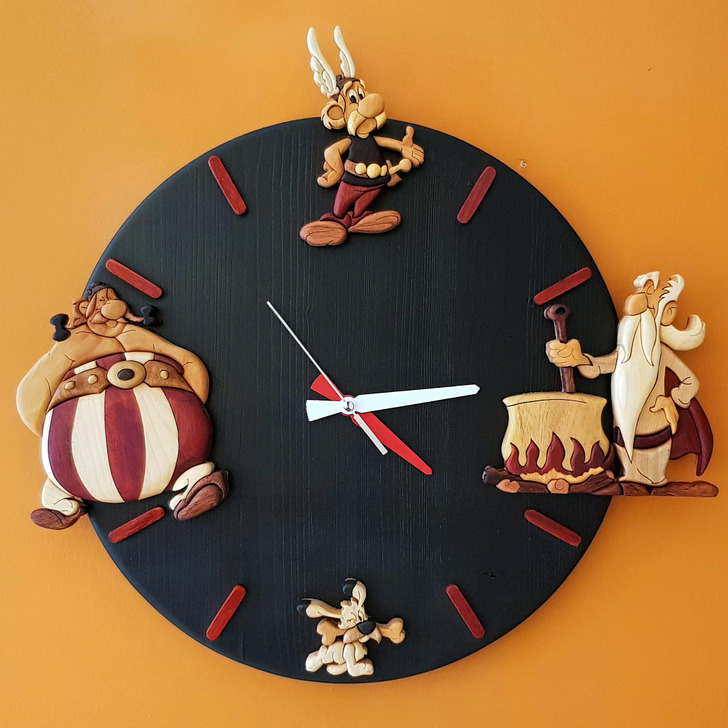 «Я сделал из дерева настенные часы с Астериксом и Обеликсом. Никакой краски, только текстура дерева и ностальгия»
