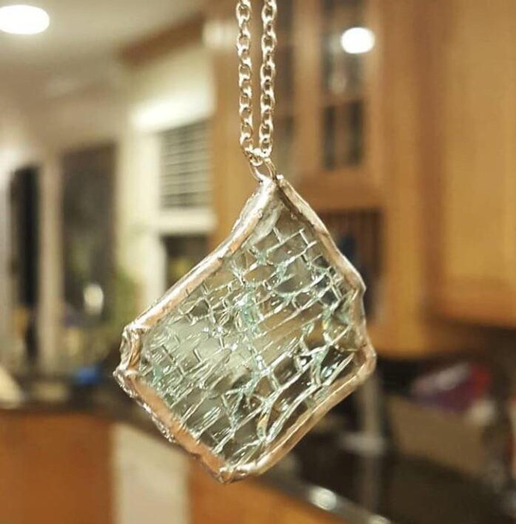 «Моя сестра недавно попала в аварию (сразу скажу, она в порядке). Я сохранила осколки от лобового стекла, чтобы сделать подвески»