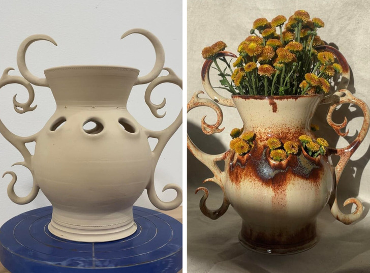 «Я сделал вазу. Зацените, как она выглядит уже с глазурью и цветами»