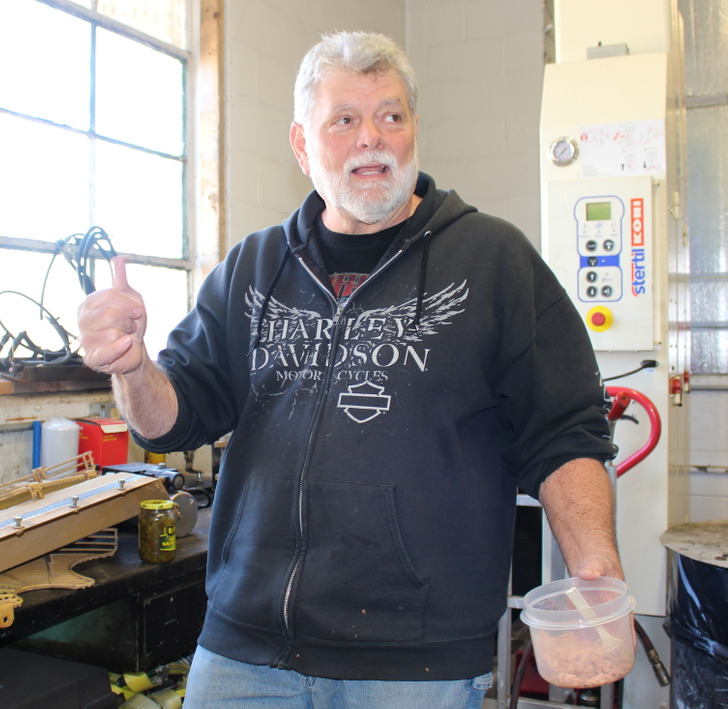 — Да, вмятина. Когда брали, новее выглядел. А сейчас кастрирован, да.