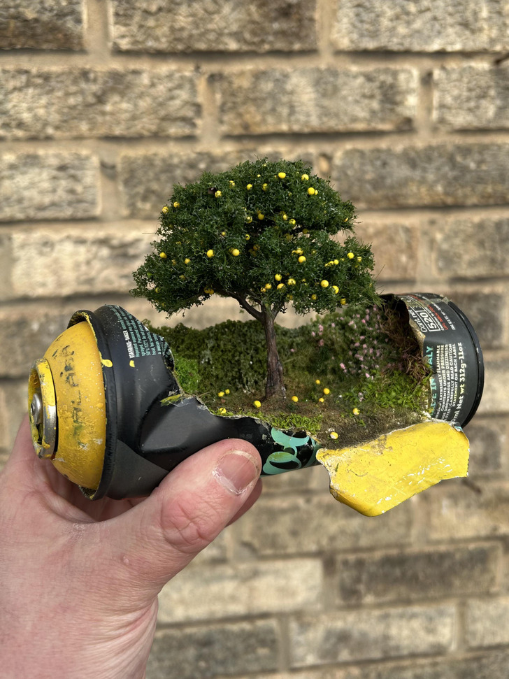 «Мне нравится превращать старые баллончики с краской в крошечные композиции. Эта небольшая композиция с лимонным деревом».