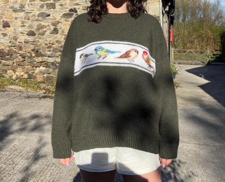 «Наконец-то закончила этот свитер для папы на его 60-летие! Сделать птиц было трудно, но я очень довольна тем, что вышло!»