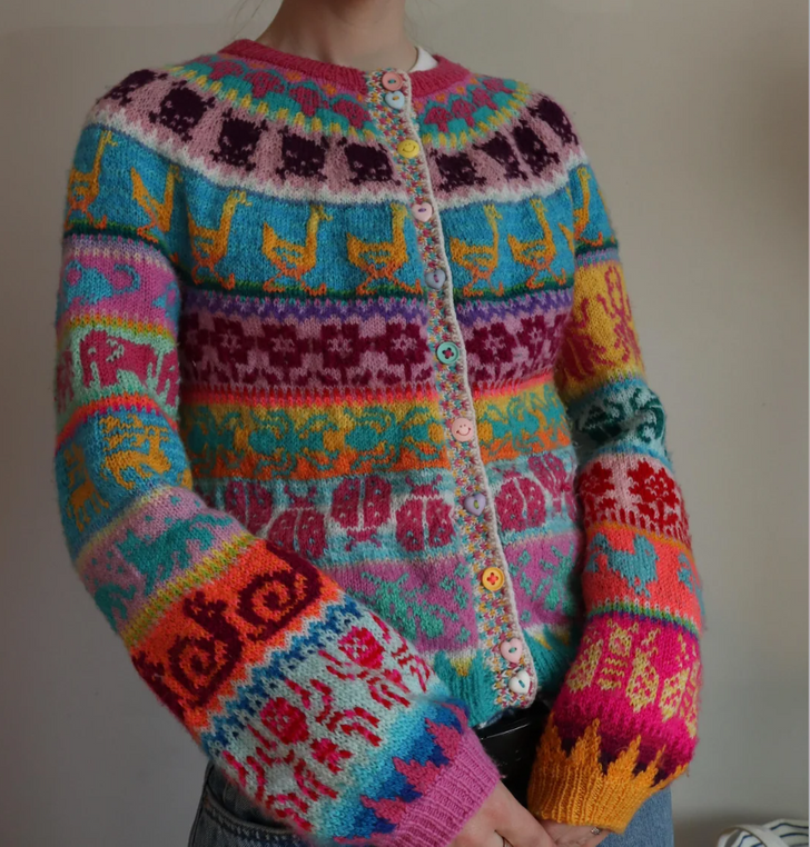 «Мой первый кардиган, связанный вручную. Он выполнен в технике вязания, которая называется Хёнсестрик»