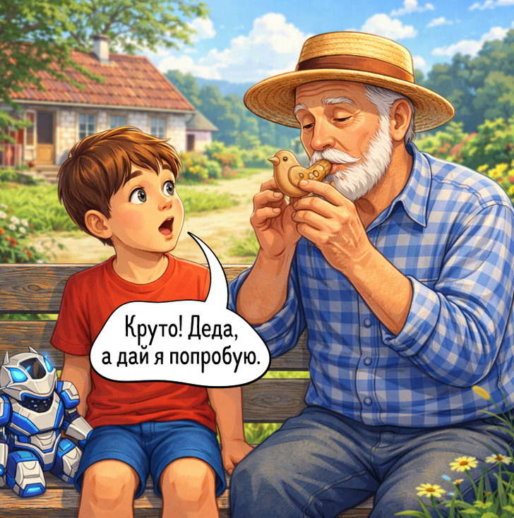 Настоящий деревенский дедушка запросто сделает внуку игрушку из подручных материалов