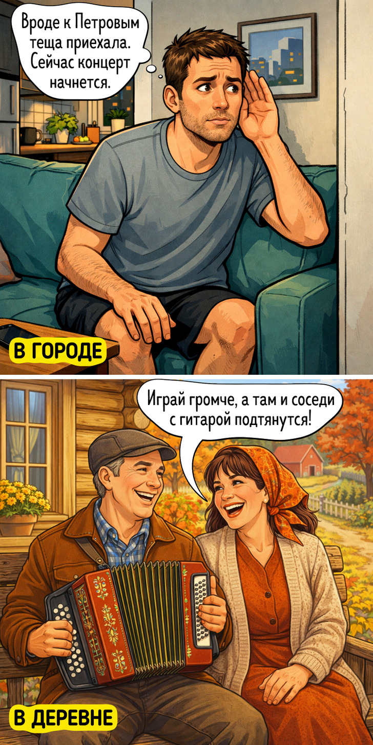 В городских квартирах порой устаешь от звуков из-за «картонных» стен, а в деревне веселые соседи могут устроить настоящий праздник