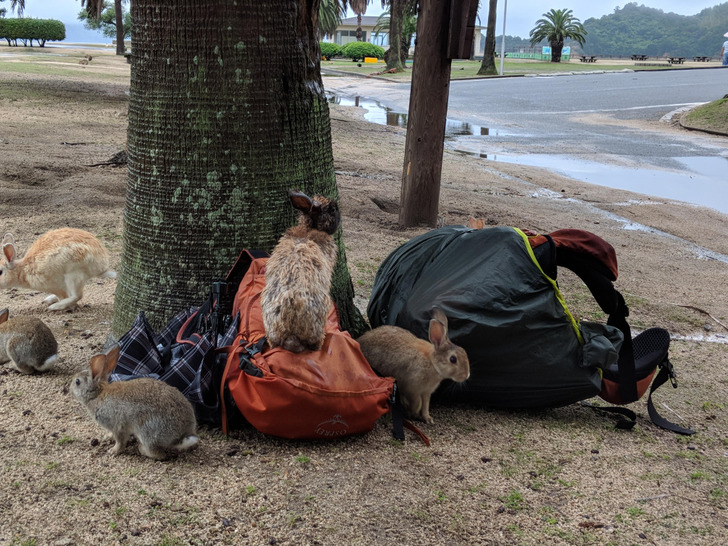«Имел неосторожность оставить без присмотра рюкзак на острове Окуносима в Японии. Его еще называют „кроличьим островом“ »