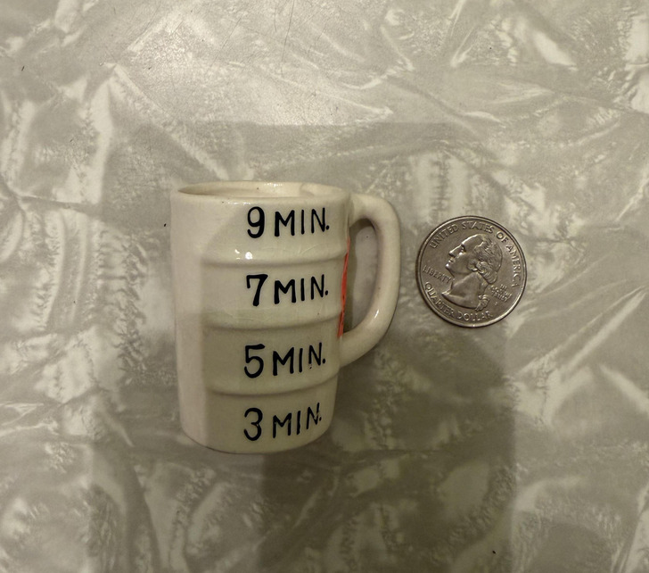 - Это мерный стаканчик для приготовления яиц в специальной яйцеварке. Нужно налить воду до определенной отметки, которая будет соответствовать времени варки яиц. © Upstairs-Bad-3576 / Reddit