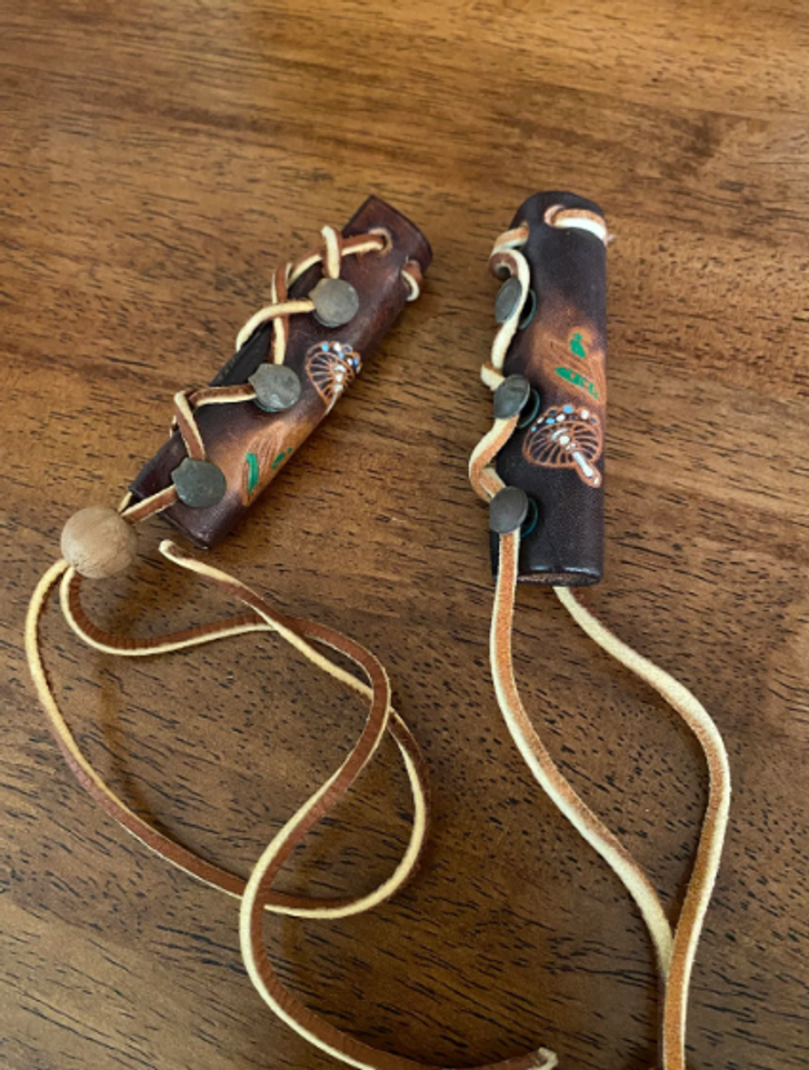 «Я нашла их в мешочке с украшениями. Сделаны из кожи с металлическими крючками, которые застегиваются на шнурки»