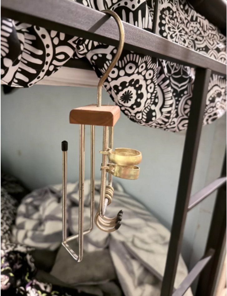 «Мы разбирали шкаф моей мамы и нашли вот эту вещь. У нее 4 крючка, и с обратной стороны есть штырь. Я подумала, может, она для украшений или галстуков? Только непонятно, для чего нужны кольца»