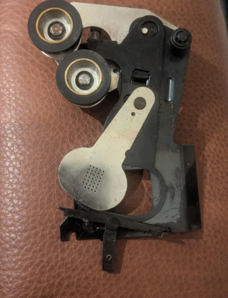 - Это затвор для проектора. Экран опускается, чтобы пленка не сгорела от тепла проекционной лампы. Странно, что вы обнаружили только одну детальку от всего устройства. Единственное, что приходит на ум, это то, что кто-то из прошлых домочадцев много лет назад занимался ремонтом фотоаппаратов и проекторов. © spoung45 / Reddit