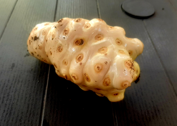 «Шел мимо, и тут с громким хлопком рядом свалилось это. С дерева. Что это?» Похоже на моринду цитрусолистную. Она съедобная, но очень гадкая на вкус и запах. © mmoolloo / Reddit