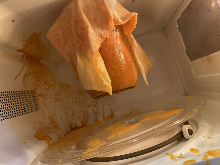 «Решил разогреть суп в микроволновке. А он, мало того, что развел бардак, так еще и нарушил законы гравитации»