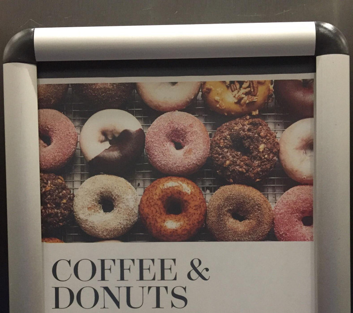 «Объявление в моем лифте: „Приходите на кофе и пончики“»