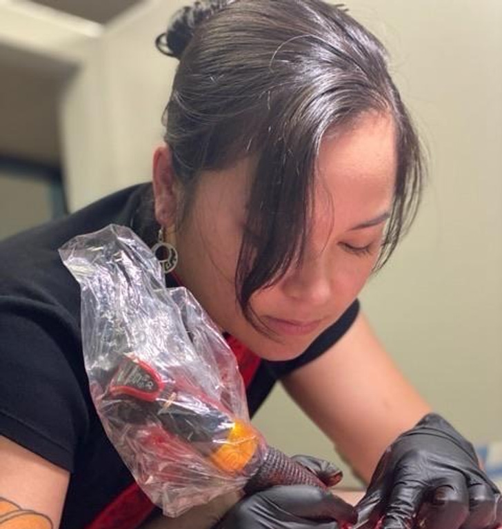 «Жена устала от работы в магазине, уволилась и стала осваивать профессию своей мечты. Вчера она сделала первую татуировку!»