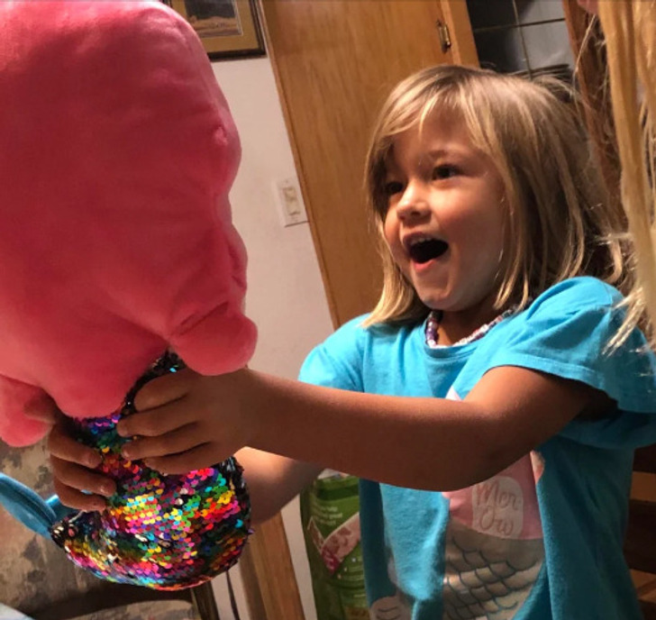Такой чистейший детский восторг не может оставить никого равнодушным. Мама именинницы рассказала, что дочка — идеальный получатель подарков, потому что реагирует вот так почти каждый раз. Но главная интрига еще впереди: оказалось, что на следующий день девочку ждет «Завтрак с русалками» — мероприятие с бассейном, где настоящие живые русалки плавают прямо перед гостями. Мама призналась, что сама уже не может дождаться реакции дочери, и, судя по фото с плюшевой русалочкой, там будет что снять на камеру.