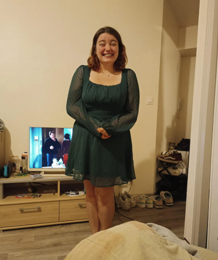 «Реакция моей подруги, когда она наконец-то смогла надеть платье, купленное три месяца назад. Платье было на два размера меньше — и вот сегодня оно ей как раз»