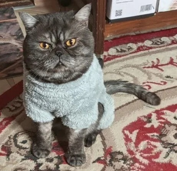 - А дома Боцман не давал мне снимать с него трикотажную кофточку, в которой он всегда ходит. Сразу обозначил — не трогай, это мое. Он у нас любит одежду. © feya.dolls / Pikabu