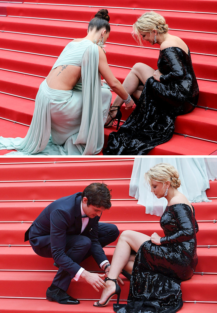 Актриса Виржини Эфира не могла самостоятельно справиться с расстегнувшейся босоножкой. Прямо на ступеньках каннской красной дорожки на помощь ей пришла коллега Адель Экзаркопулос. Но и вдвоем девушки не сумели совладать с замысловатой застежкой. Тогда за дело взялся Нильс Шнайдер. Хорошо, когда рядом такие отзывчивые люди!