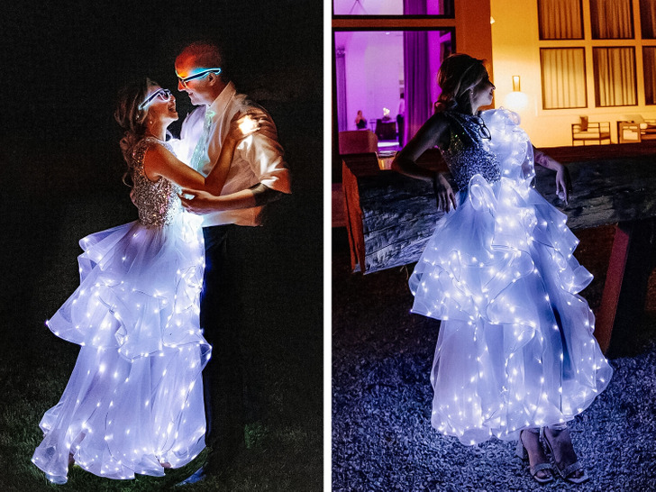 «Месяц назад я вышла замуж. Сделала себе платье с подсветкой. Пульт дистанционного управления я оставила себе, батарейки отдала мужу»