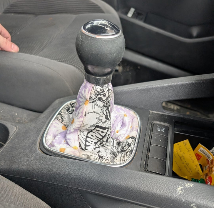 «Сшила новый чехол для рычага переключения передач»