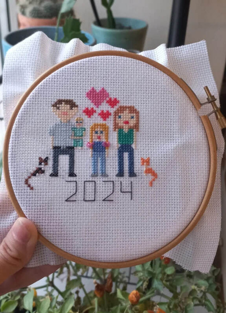 «Каждый год вышиваю свою семью. В этом году появились новые персонажи»