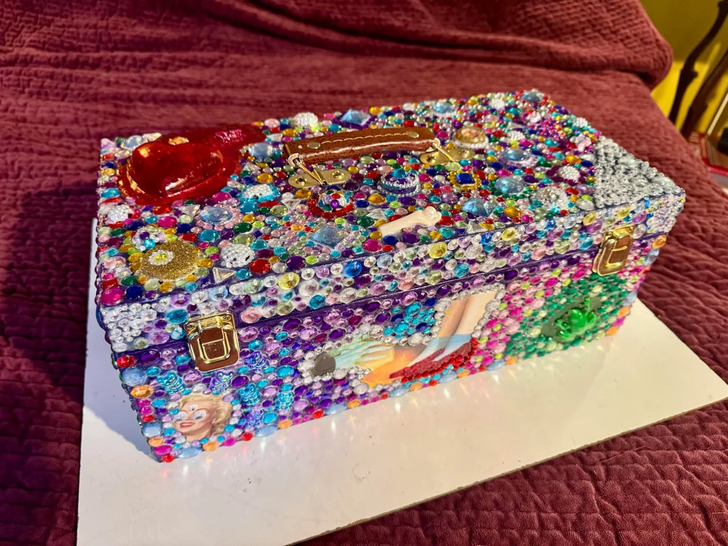 «Решила украсить коробку, используя материалы, которые давно валялись в уголке для рукоделия. Беспорядок я не устранила, но процесс был очень веселым!»