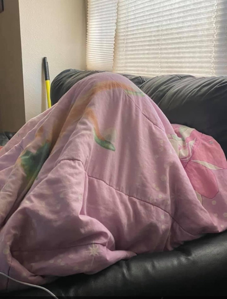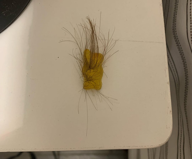 «Я сказала мужу, что больше никаких перекусов в постели. Сегодня утром мой муж проснулся с этим мармеладным мишкой, застрявшим в его волосах, и мы оба хорошенько посмеялись»