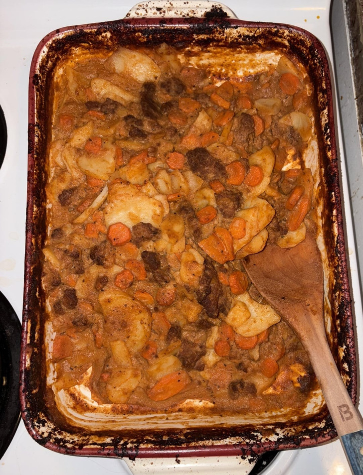 «Я потратила более 2 часов на приготовление жаркого и попросила мужа убрать его, пока я укладывала детей спать. А сегодня утром обнаружила вот это. Оно все еще стоит на плите»