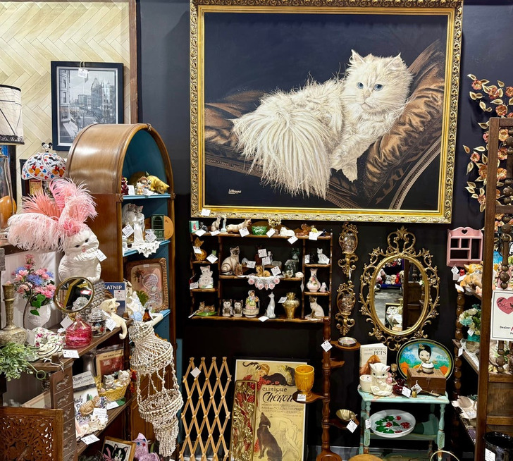«Она открыла свой „Уголок кошачьей леди“ в антикварном магазине, где выставляет всех своих подопечных».