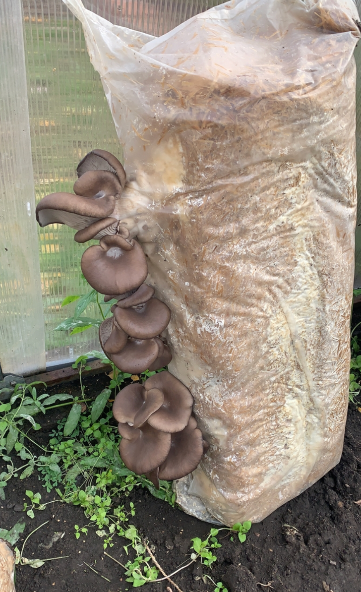 «Грибы выросли из отработанных брикетов после производства, вешенки. Взял для удобрения, получил такой результат»