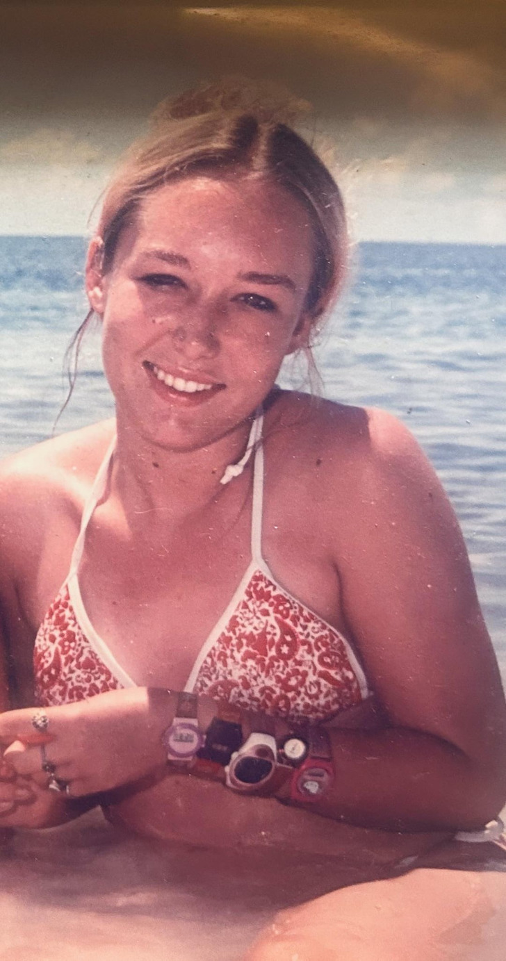 «Не фотка, а сокровище. 2001 год. Я считала себя крутышкой, потому что носила часы по 5 штук каждый день, даже на пляже»