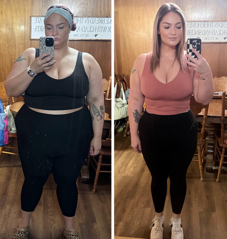 «Я придерживаюсь легкого дефицита калорий, прогулок и терапии. Я так горжусь собой, хотя работа еще не закончена!»