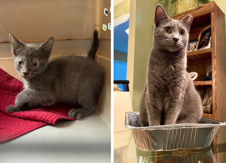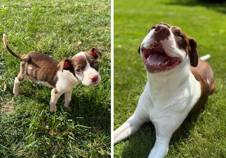 «Мы нашли Джои, когда ему было 5 месяцев. Он выпрашивал еду на заправке и был едва жив. Сейчас ему 9 месяцев и он живет свою лучшую жизнь»