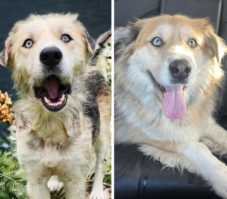«Мы нашли Джои, когда ему было 5 месяцев. Он выпрашивал еду на заправке и был едва жив. Сейчас ему 9 месяцев и он живет свою лучшую жизнь»