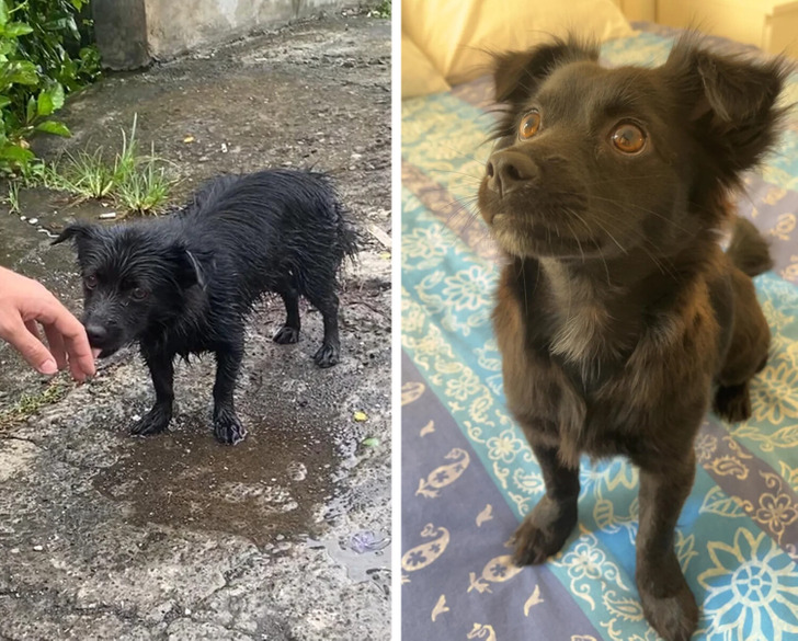 Бедненький, на первом фото аж рёбрышки торчат. 😢