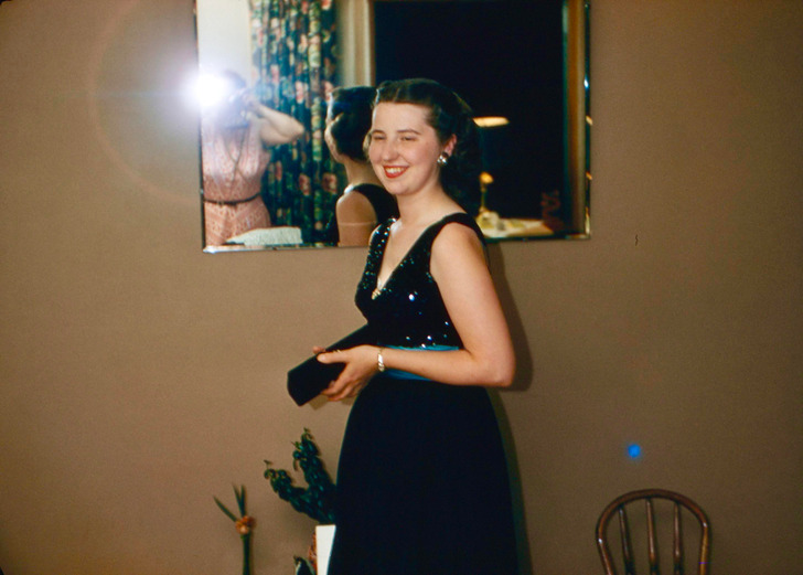 «1954 год, бабуля делает снимок на память, провожая маму на новогоднюю вечеринку»
