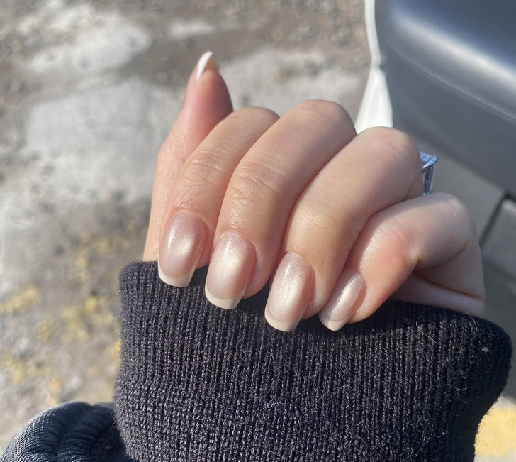 «Ногти сразу после салона. Цвет нравится, но кажется, что они уже как будто отросли? Разве покрытие не должно быть ближе к кутикуле?»