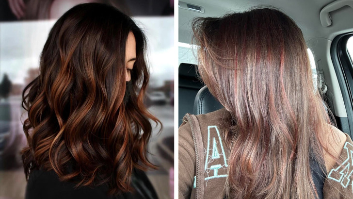 «Пошла к своему мастеру, попросила теплые каштановые пряди, как на первом фото. Она вроде поняла, но в итоге сделала странные рыжие полосы до самых корней»