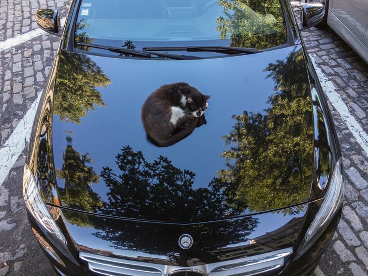 Оказалось, все просто до невозможности! Кота засняли на капоте авто, правильно скадрировали и вуаля — у вас мистическое фото парящего котика.