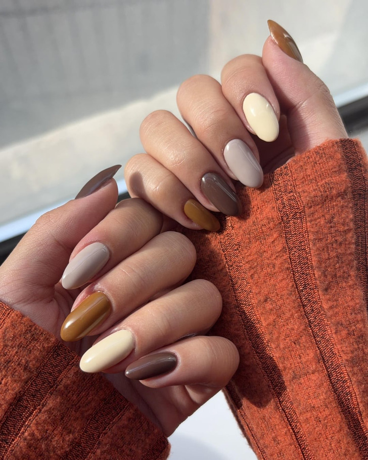 Шоколадный оттенок коричневого был на пике популярности осенью, однако он не потерял своей актуальности и сейчас. Для того, чтобы маникюр выглядел дорого, лучше выбирать более теплые тона. Журнал Allure назвал такой коричневый одним из основных цветов зимней палитры.