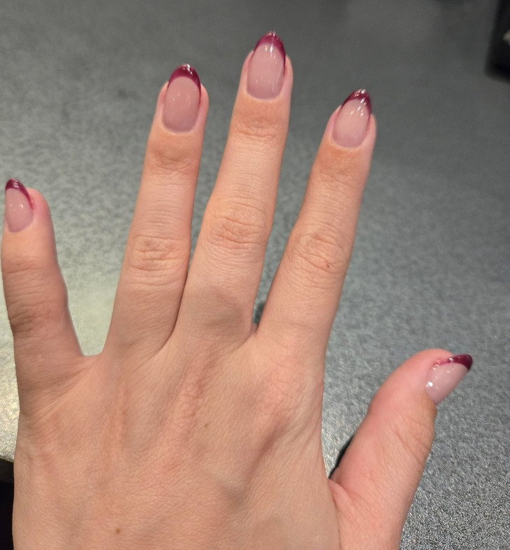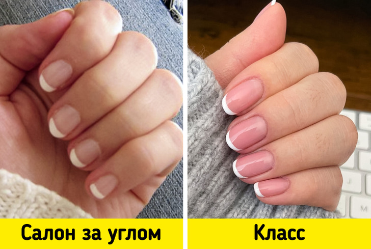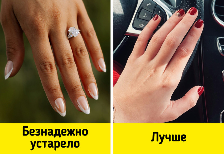 Эксперт элегантности Антонина Хигхам предупреждает, что френч с широким кончиком дешевит образ. Вместо этого лучше выбирать более изящные варианты, где френч выглядит аккуратно.