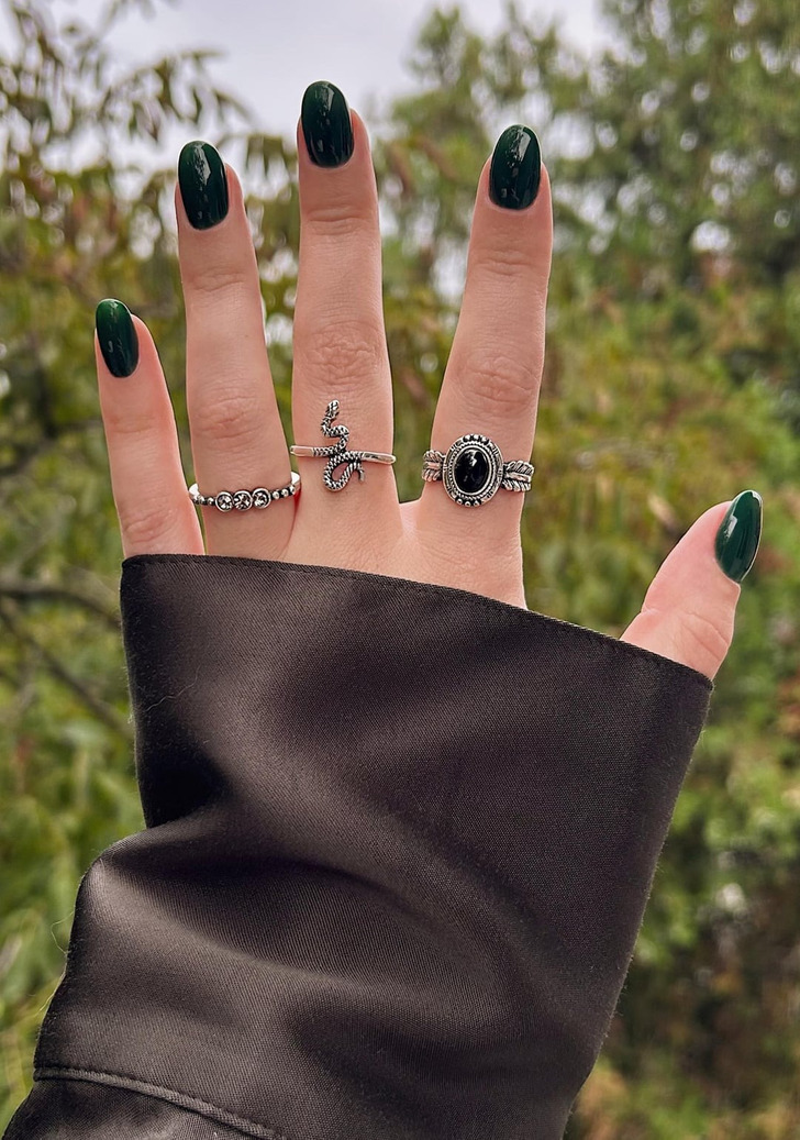 Не самый традиционный выбор на осень — шалфейный зеленый. Эксперты модного издания Byrdie объясняют, что за счет баланса теплых и холодных тонов такой зеленый выглядит дорого и изысканно.