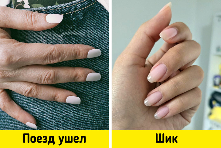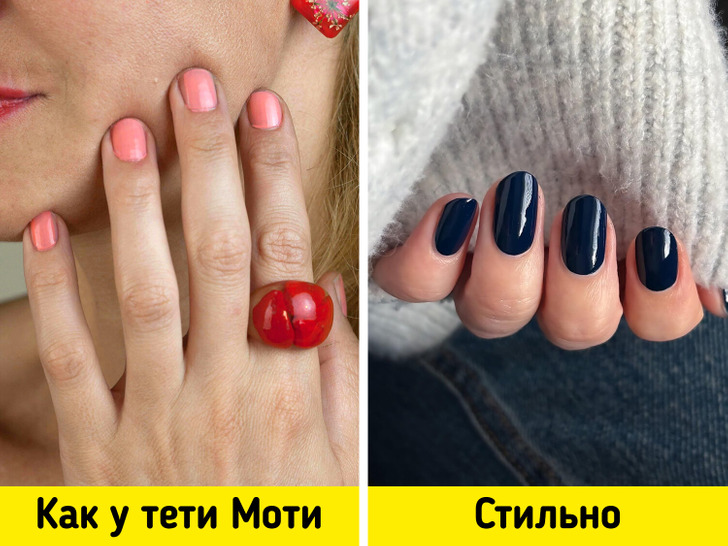 По словам экспертов Who What Wear, пастельные тона не актуальны на данный момент. К тому же, некоторые оттенки, например, пастельный персик (проверено на себе автором статьи), добавляют рукам возраст и не очень выгодно подчеркивают кожу. Эксперты уточняют, что пастельная палитра — отличный вариант на весну и лето, но в холодное время года советуют присмотреться к более темным, глубоким цветам. Например, беспроигрышно смотрится темно-синий или, как его называют некоторые, — полуночный синий.