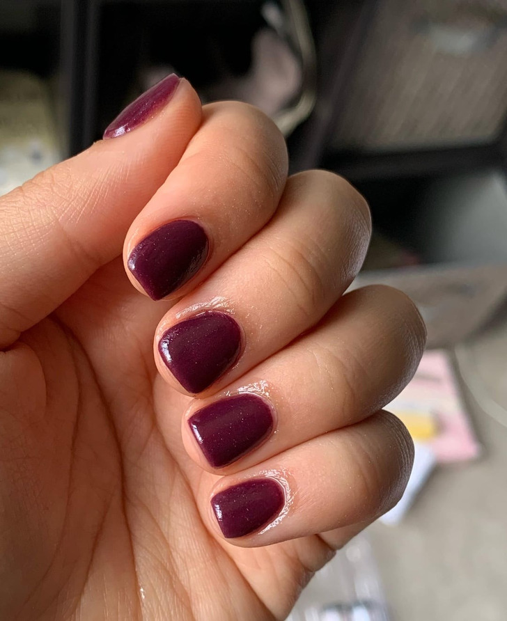 Многие стилисты полюбили сливовый оттенок фиолетового. Его называют не просто дорогим, а даже королевским. Такой маникюр отлично дополнит ваш образ.