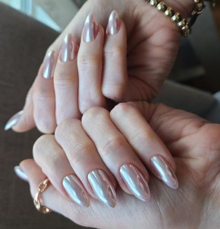 Эксперты Harper’s Bazaar предлагают обратить внимание на серебряный металлик. Такой маникюр смотрится дорого и легко сочетается с любой одеждой, в отличие от более насыщенного и активного золотого хрома.