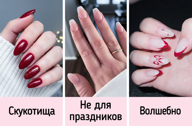 Ну как-то... многое из предложенного просто плохо. Не исполнение (хотя и не без этого), но идеи - пряники-пироженки, новогодние шапки и это бесконечное количество бантиков. Понравился только маникюр в стиле елочных игрушек - там сделано современно будто. А не привет из 2015.